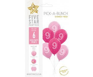 9th Birthday Pink Number 9 Pick-a-bunch balloons.