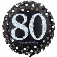 80th Birthday foil 43cm balloon with holographic sparkles in black, gold, silver & white.