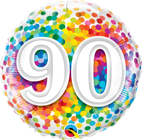 Celebrate the 90th Birthday with this Bright multi coloured confetti looking foil 45cm balloon with a big 90 on either side.