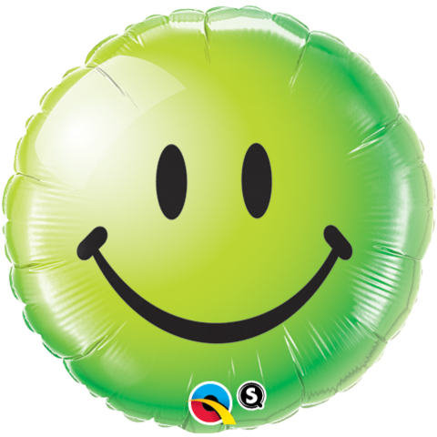 Smiley Face Foil Balloon in Lime Green. These are great to add to any balloon bouquet, especially Get Well Bouquets. This balloon measures 45cm wide when inflated.