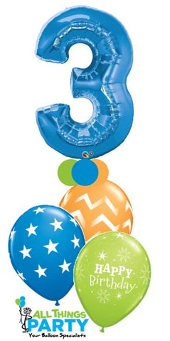 3rd Birthday Big Number Blue Bouquet INFLATED