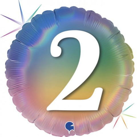 Number 2 , 2nd BirthdayPastel Rainbow Foil Round Balloon 45cm INFLATED #780425