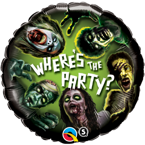 Zombies, Where's The Party, Perfect for a spooky party or Halloween theme. Measures 46cm wide when inflated.