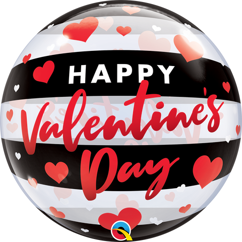 "Happy Valentines Day" Red hearts & black strips bubble balloon.